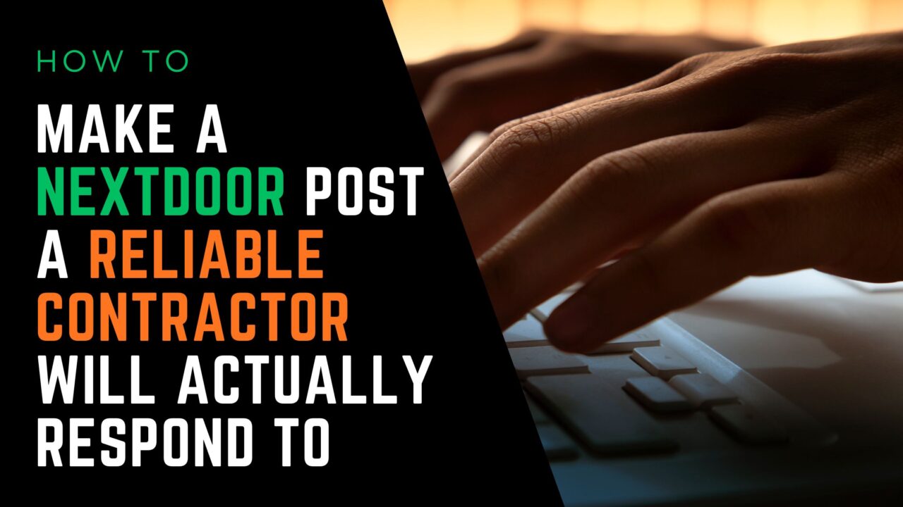 If you want a reliable contractor to respond to your Nextdoor post, skip the demands, the complaints about past work, and the “need this cheap/today” phrasing. Instead, think of your post the same way you’d think about a job posting for an employee — because that’s exactly what you’re doing: hiring someone for a job.