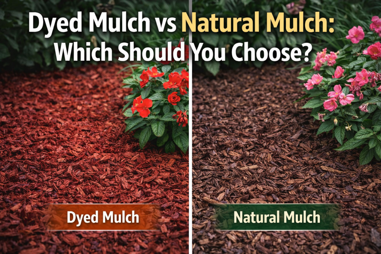 Choosing the right mulch for your flower beds isn’t just about looks — it affects soil health, plant performance, and long-term maintenance. While dyed mulch and natural mulch may look similar on the surface, they serve different purposes and have distinct pros and cons. In this guide, we’ll break down the key differences so you can decide which option is right for your landscape.