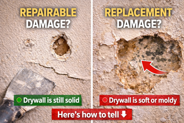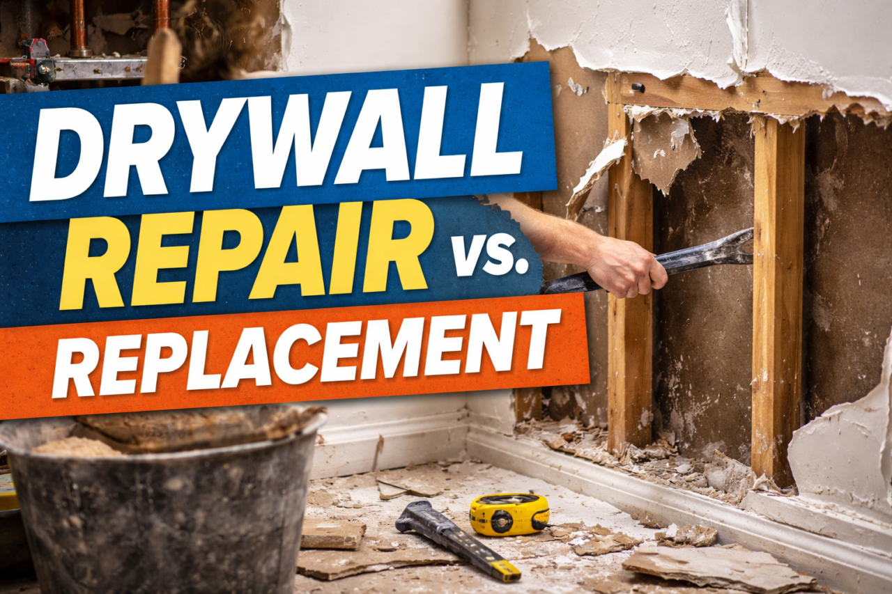 The answer depends on the extent of the damage, the structural condition of the drywall, and whether moisture or framing issues are involved. In many cases drywall can be repaired quickly, but sometimes replacement is the smarter long-term solution.
